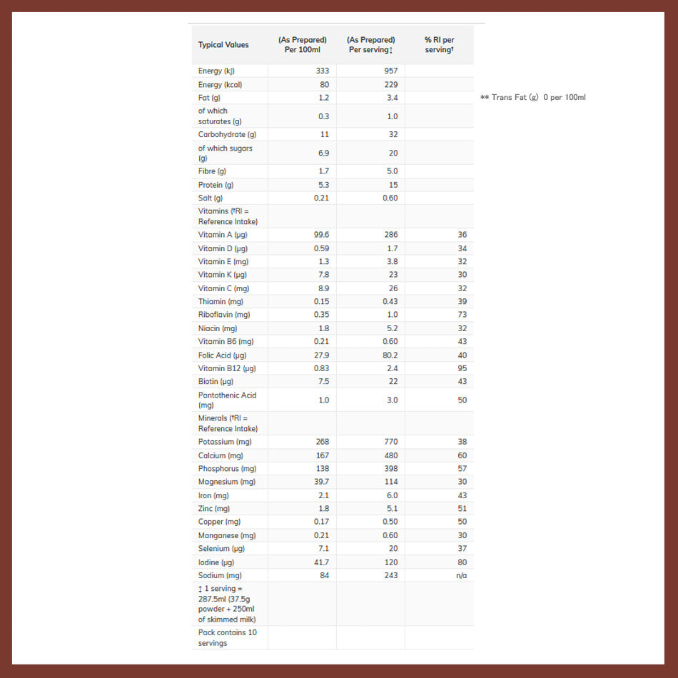 Skimmed Milk Powder, Maltodextrin, Fat Reduced Cocoa Powder (13%),