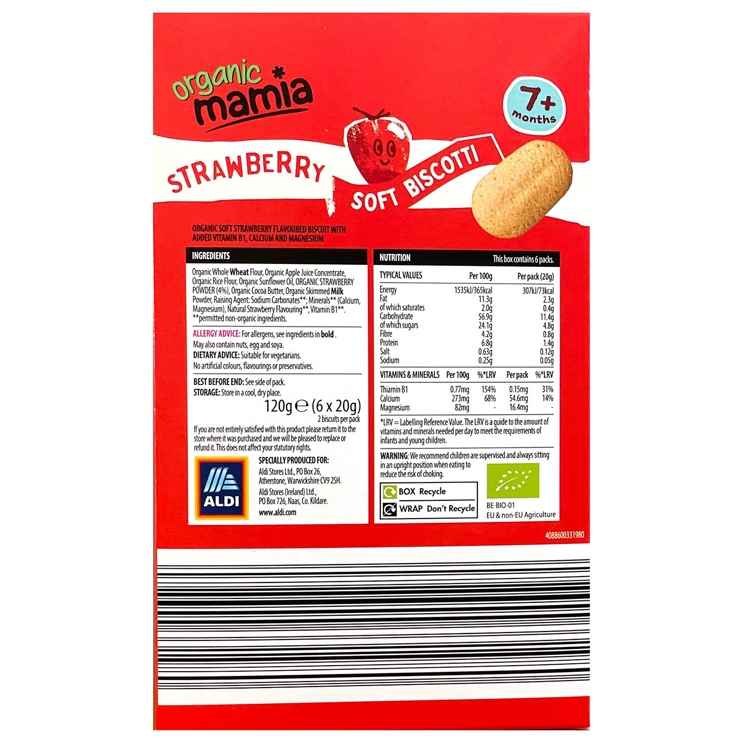 - Organic soft strawberry flavoured biscuit with added vitamin B1, calcium and magnesium