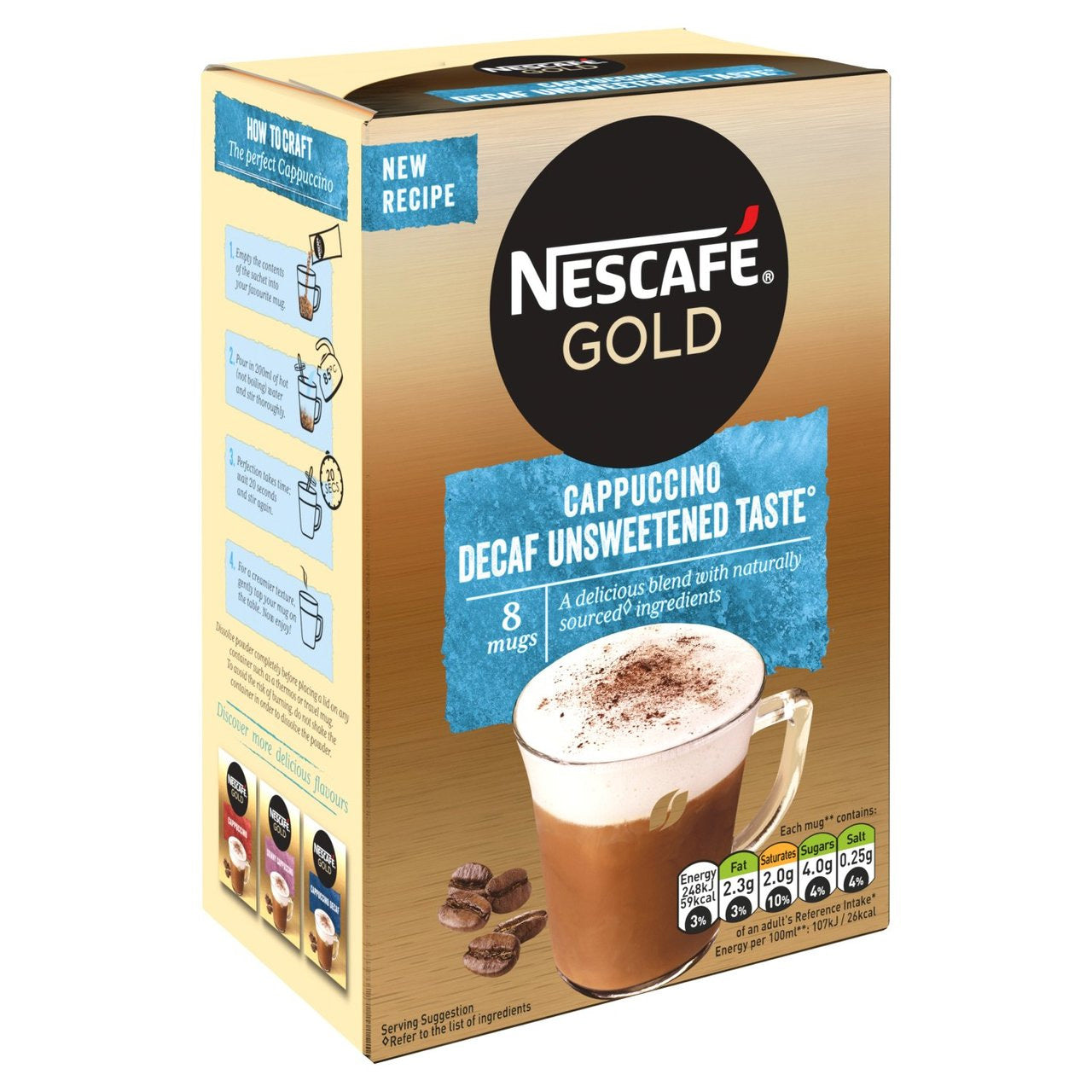 - Take a break with a NESCAFÉ GOLD Cappuccino Decaf Unsweetened Taste, our milky coffee shop-style drink