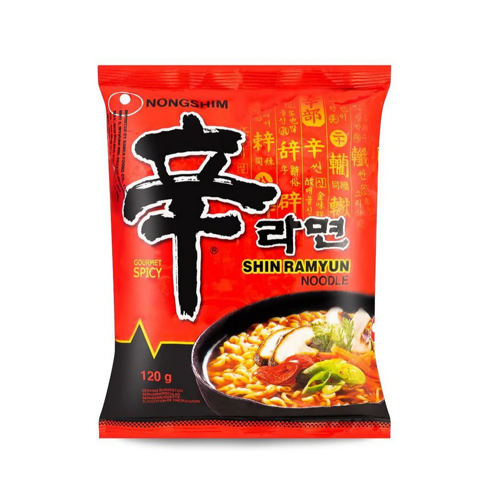 Nongshim Shin Ramyun, also known as Nongshim Ramen, is a popular instant noodle product from South Korea. This product features Nongshim's signature spicy and savoury flavour, with a unique blend of beef, garlic, and chili peppers that create a delicious broth. The noodles are made from high-quality wheat flour and have a chewy texture that pairs perfectly with the bold flavours of the soup. With its quick and easy preparation, Nongshim Shin Ramyun is a convenient meal or snack option that is perfect for those who love spicy food.