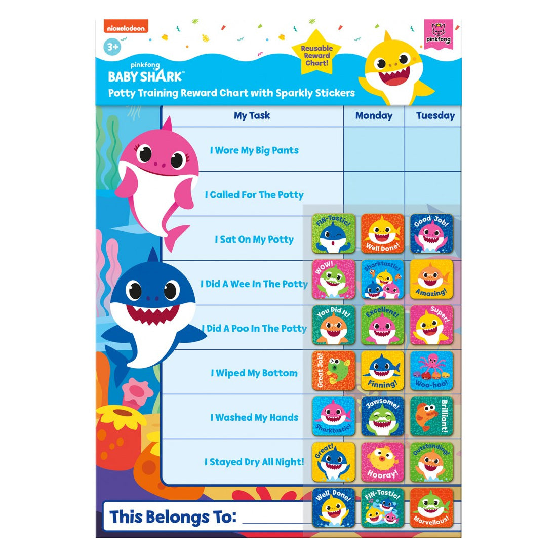 Baby Shark Potty Training Reward Chart and Sparkly Stickers