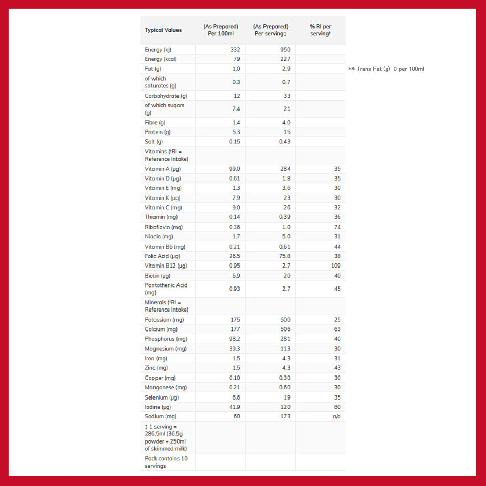 Skimmed Milk Powder, Maltodextrin, Inulin, Soya Bean Oil Powder (Milk),