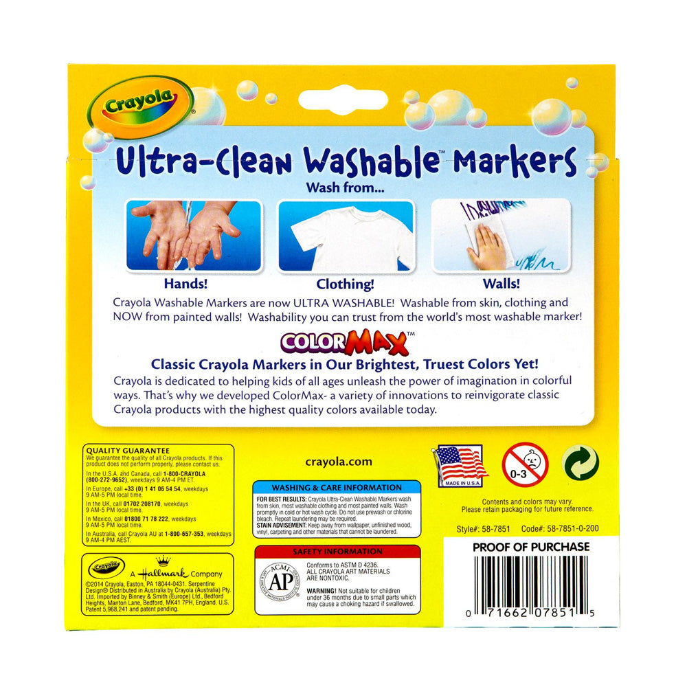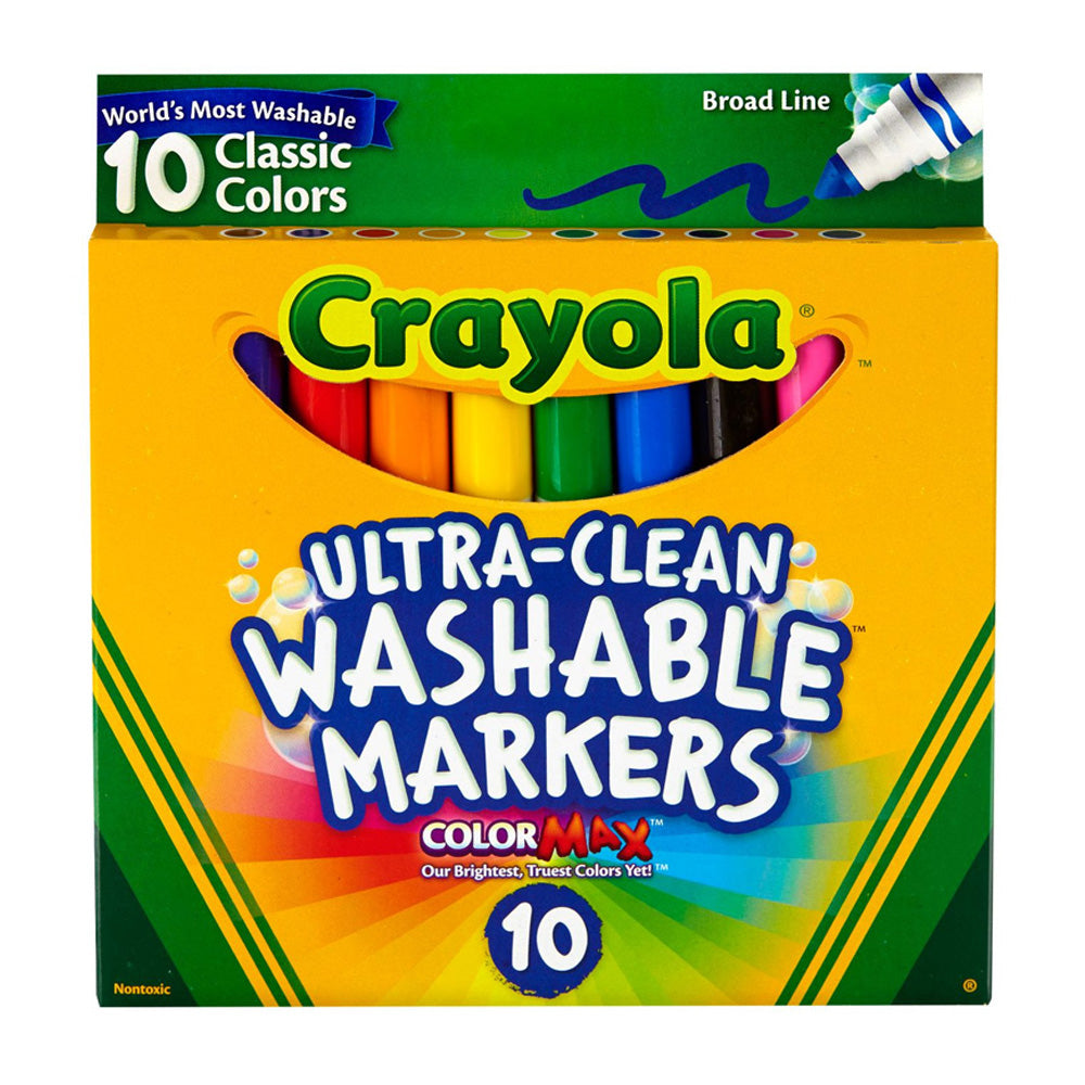 - 10-count Crayola washable markers make thick, bold lines